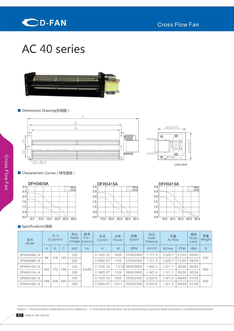 AC FAN横流风扇040参数